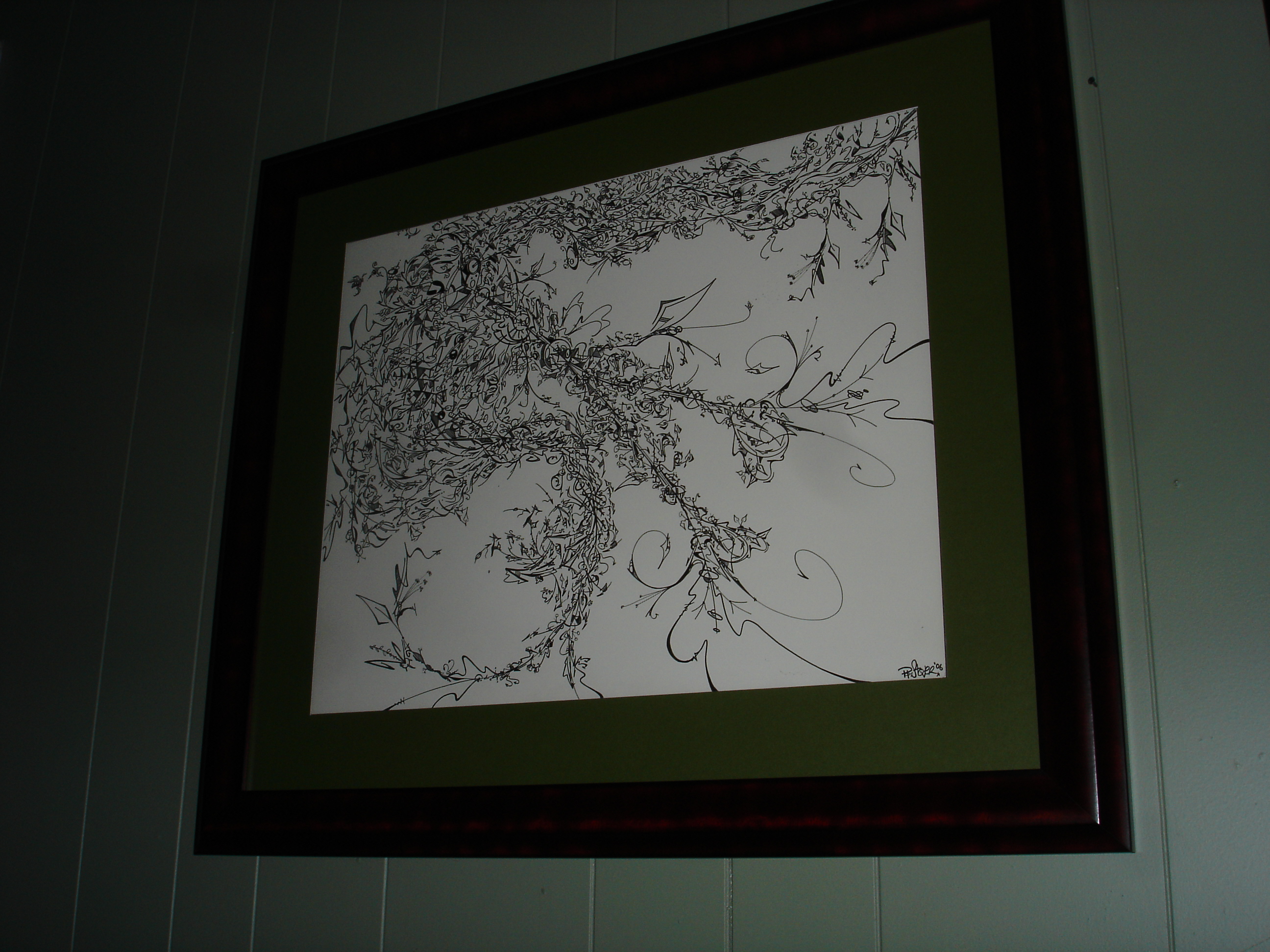 (sorry for the bad photos, it's too large to scan and hard to photograph with my digital camera, which is unfortunate, since the image is all about the insane level of detail... I'm not crazy about the composition as it appears from a distance, up close it's pretty neat!)