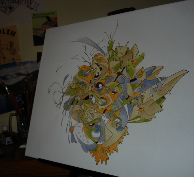 18x24in Ink on Canvas. Digitally colored.